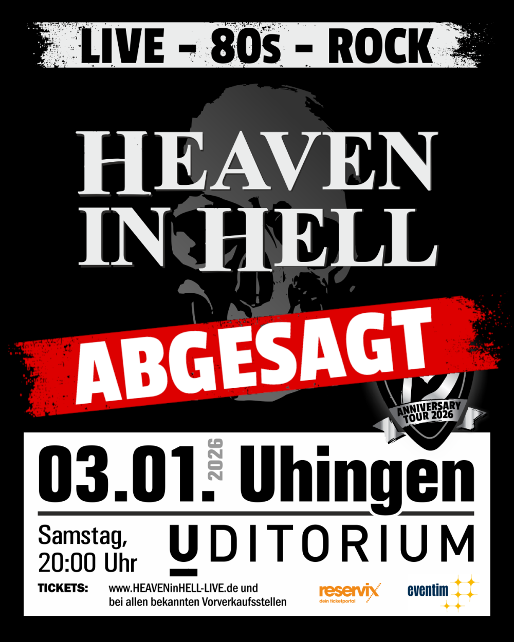 Der Ersatztermin für das abgesagte Konzert vom 03/01/26 findet am SA. 21/02/26 statt. Wir bedanken uns bei allen Beteiligten für das Verständnis und freuen uns darauf Euch dann in sieben Wochen in Uhingen begrüßen zu dürfen.